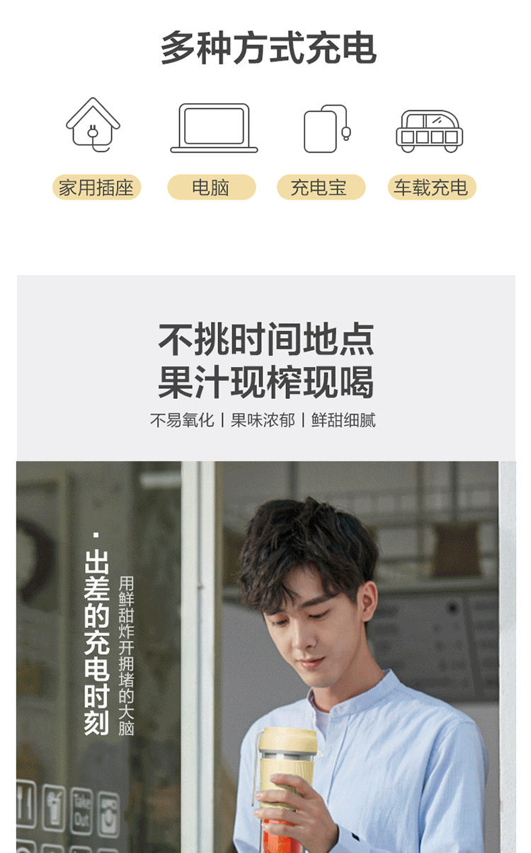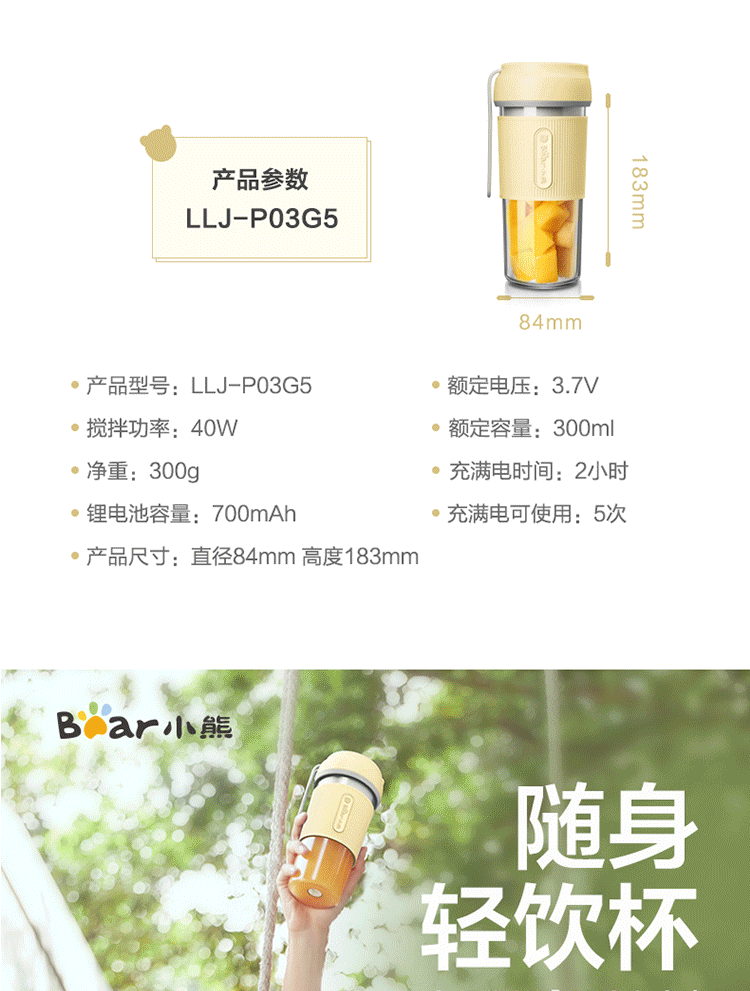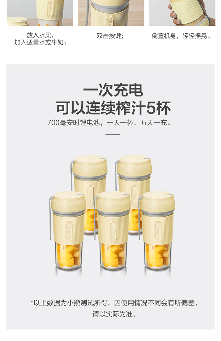 商品名称:小熊(Bear)榨汁机 充电榨汁杯 迷你多功能奶昔料理机 LLJ-P03G5