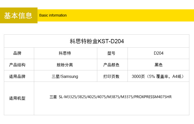 商品名称:科思特D204S粉盒 适用三星 SL M3825 M4025 M3375 M3875 M4075 专业版