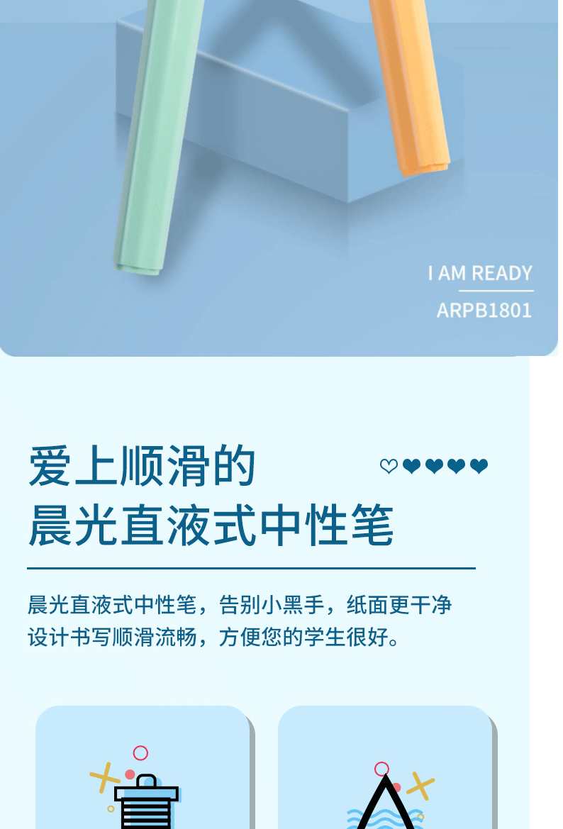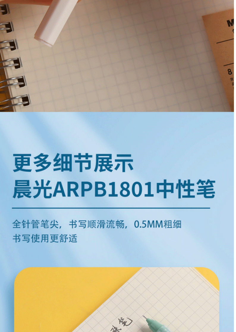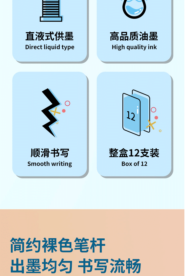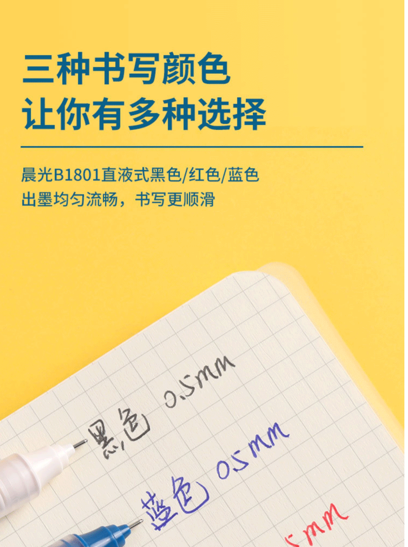 商品名称:晨光(M&G)直液式走珠笔 签字笔 大容量中性笔0.5mm 初色系列ARPB1801蓝色 12支/盒