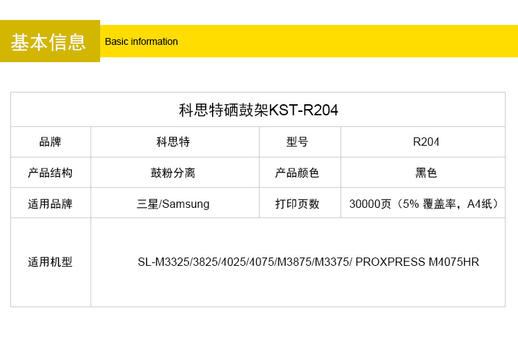 商品名称:科思特R204L鼓架 适用三星 SL-M4075 M3825 M4025 M3375 M3875 专业版