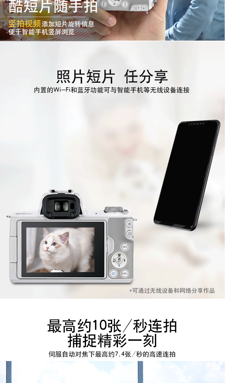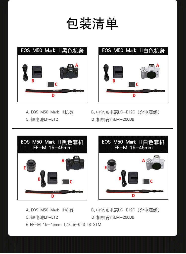 商品名称:佳能(Canon)EOS M50 Mark II M50二代 微单数码相机 黑色15-45标准变焦镜头套装