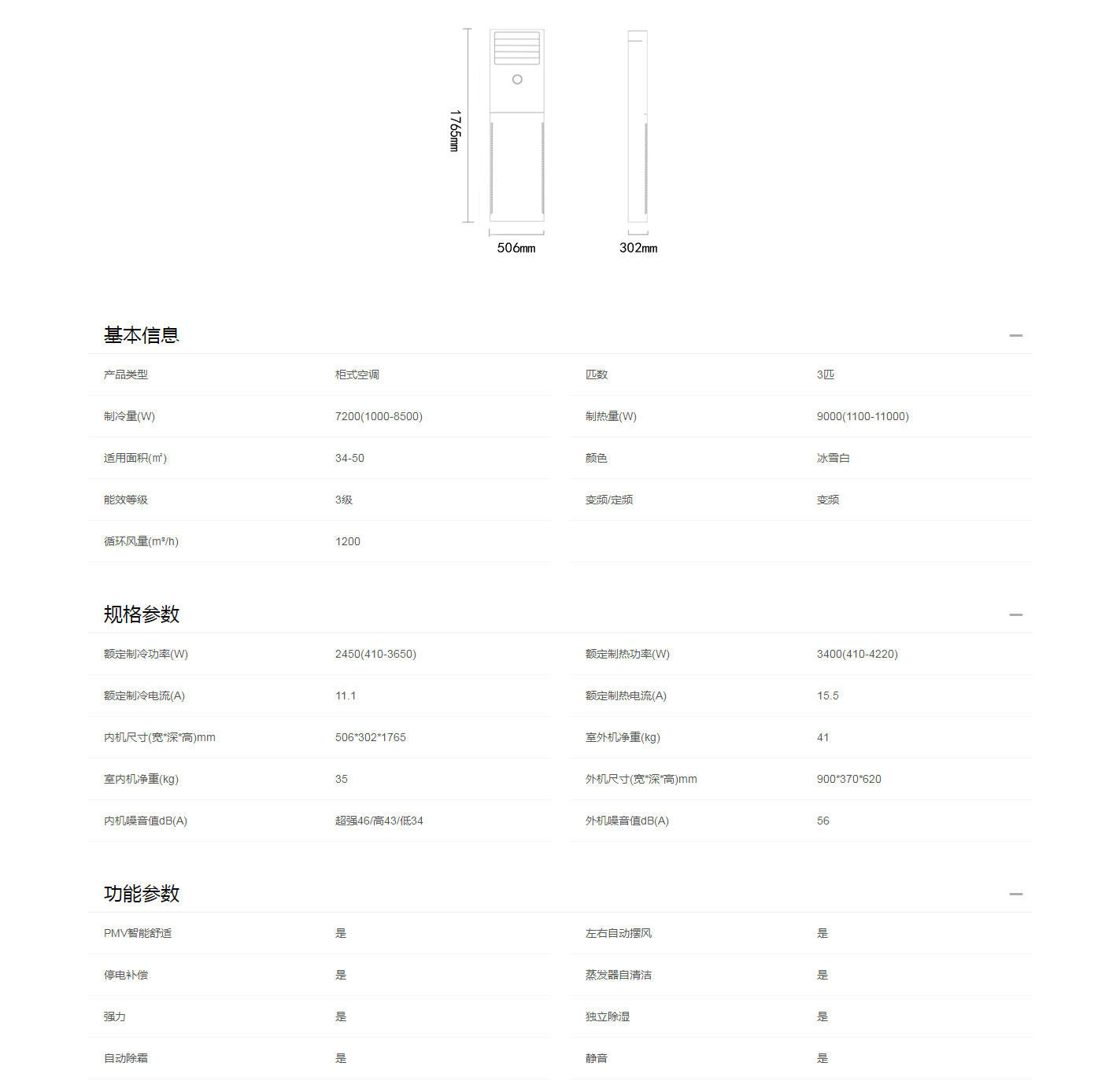 商品名称:海尔 劲享 3匹柜式变频空调 KFR-72LW/01XDA83