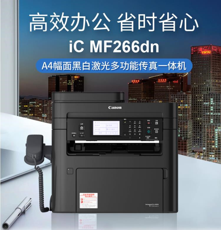 商品名称:佳能(CANON)MF266DN黑白激光多功能一体机 A4幅面 标配复印、打印、扫描,传真四合一 自动双面打印 有线网络打印