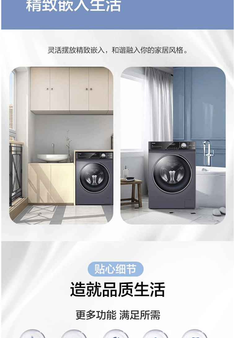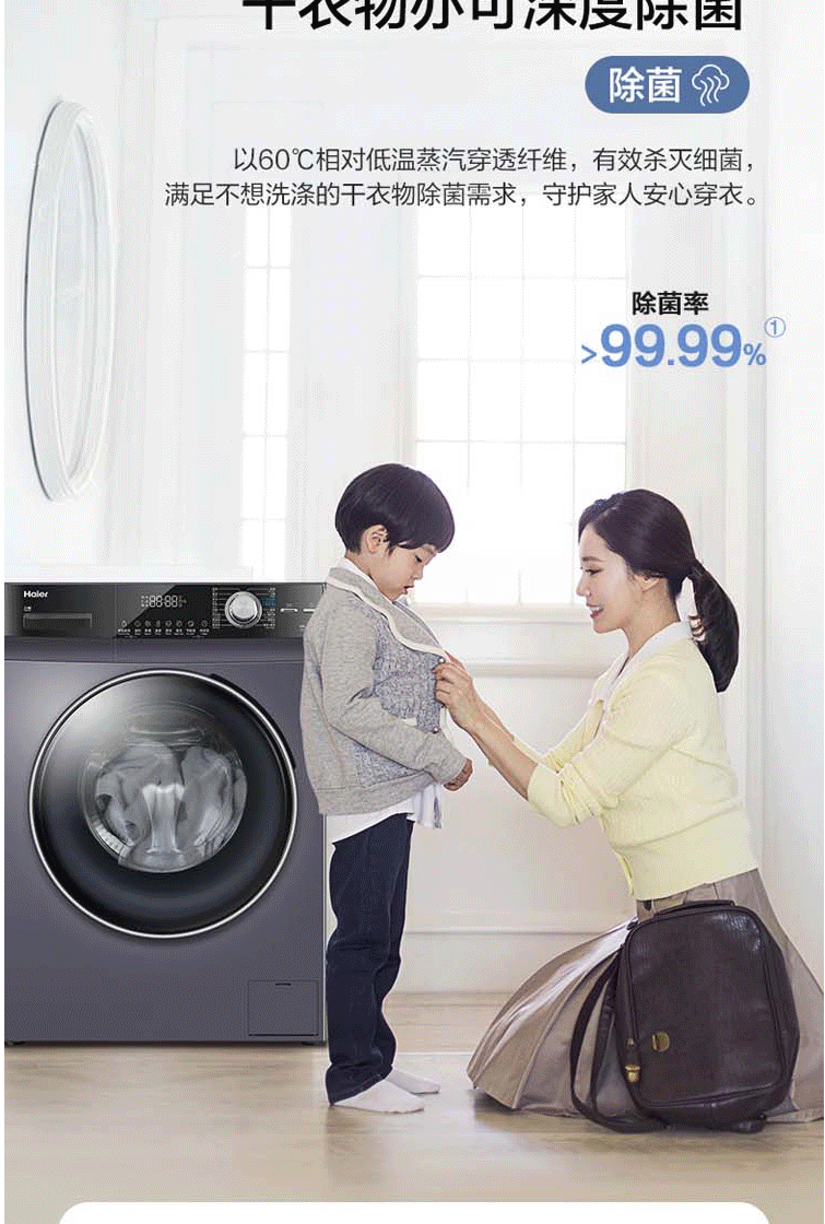 海尔(Haier)10公斤变频洗烘一体大容量滚筒洗衣机 除菌洗 除螨洗 G100218BD12S