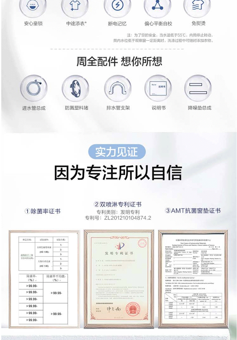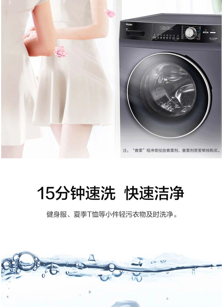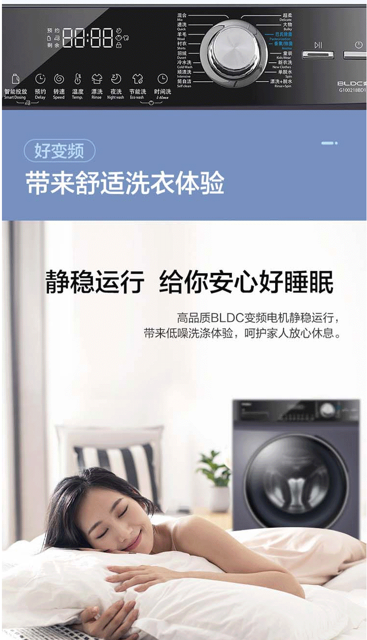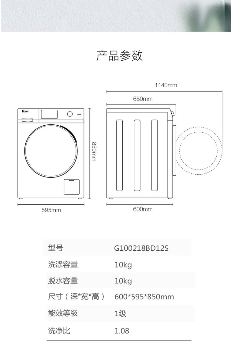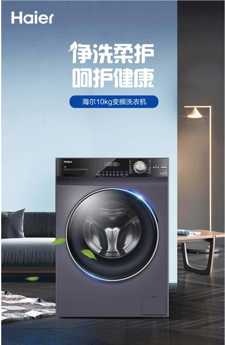 商品名称:海尔(Haier)10公斤变频洗烘一体大容量滚筒洗衣机 除菌洗 除螨洗 G100218BD12S
