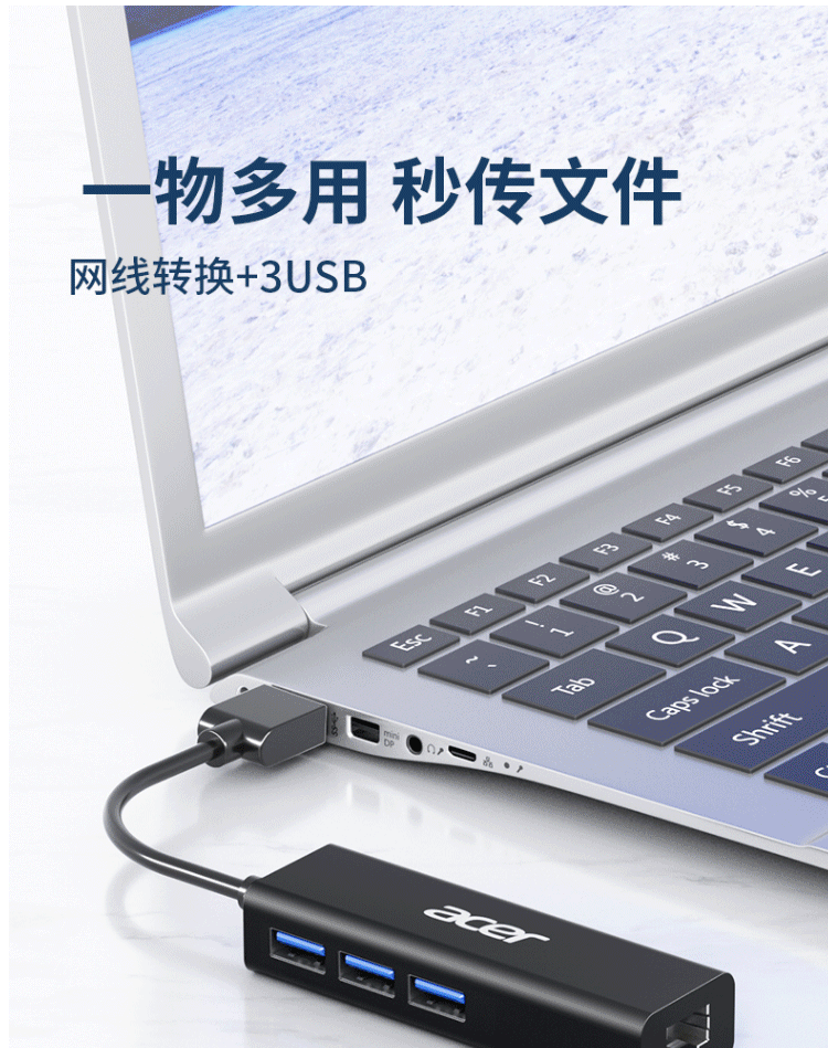 宏碁(acer)USB分线器转网口有线网卡RJ45(四合一 网口+USB*3)