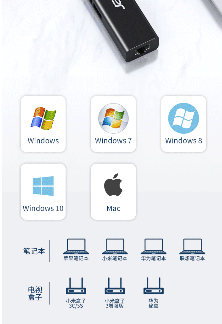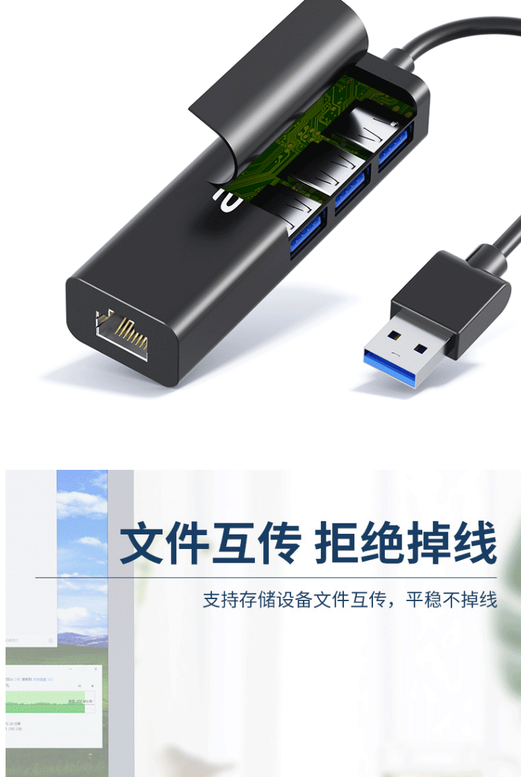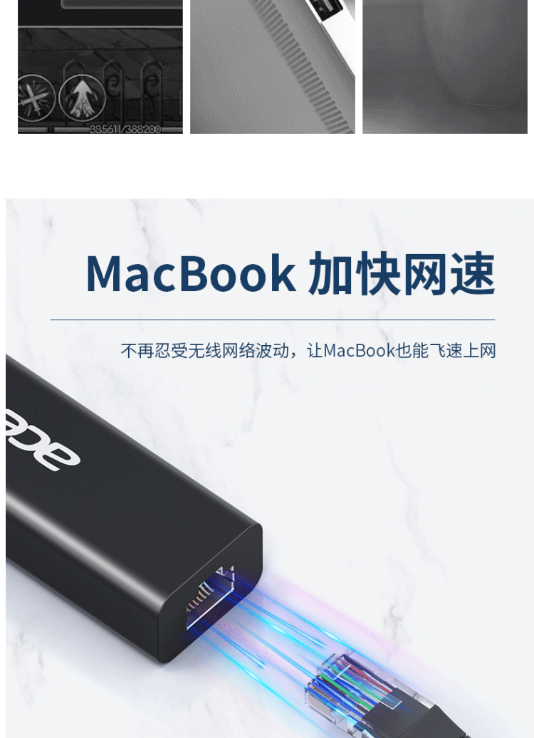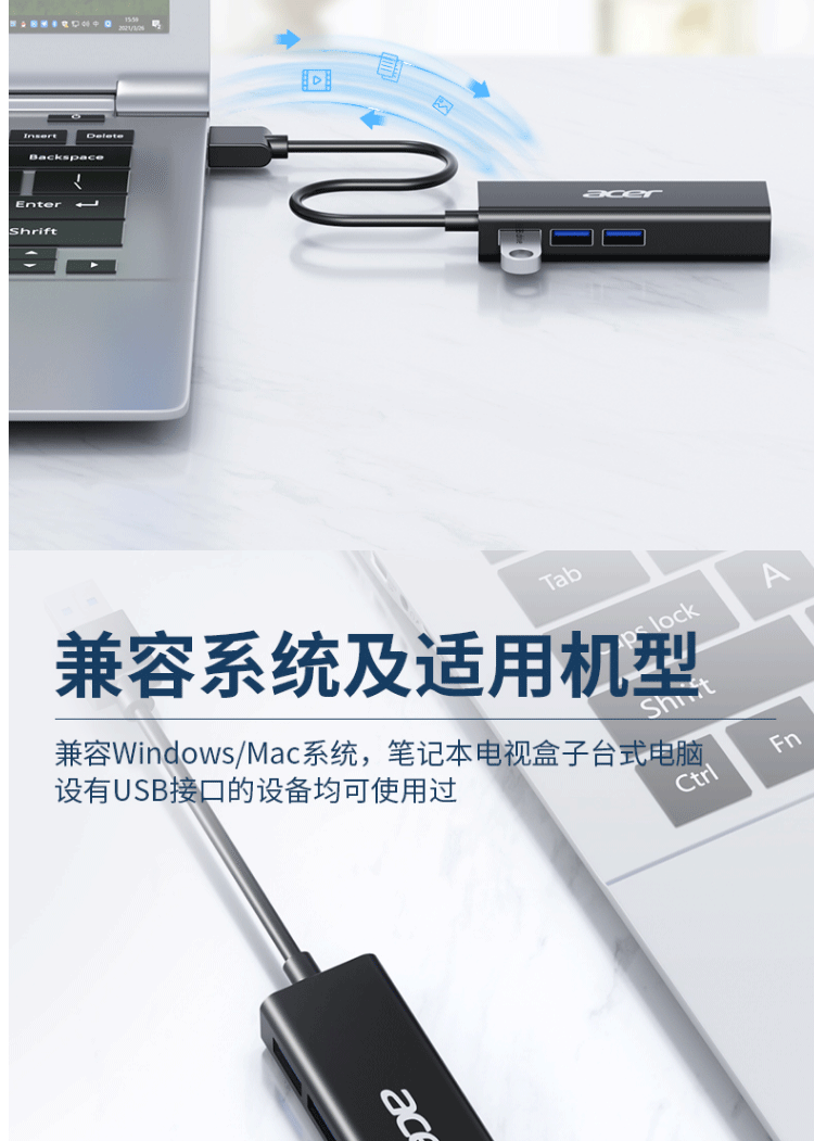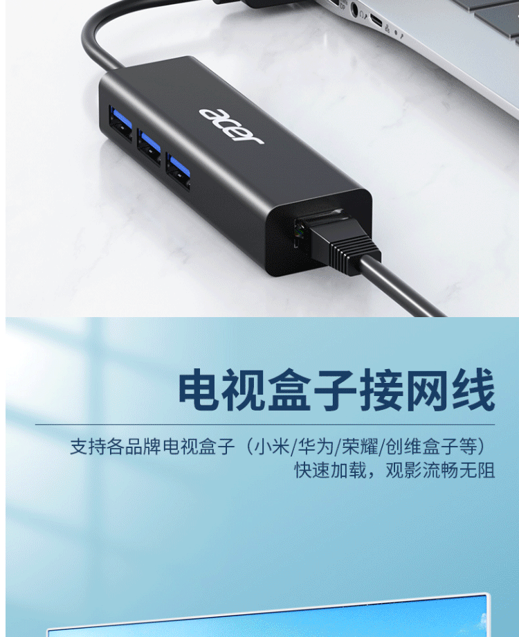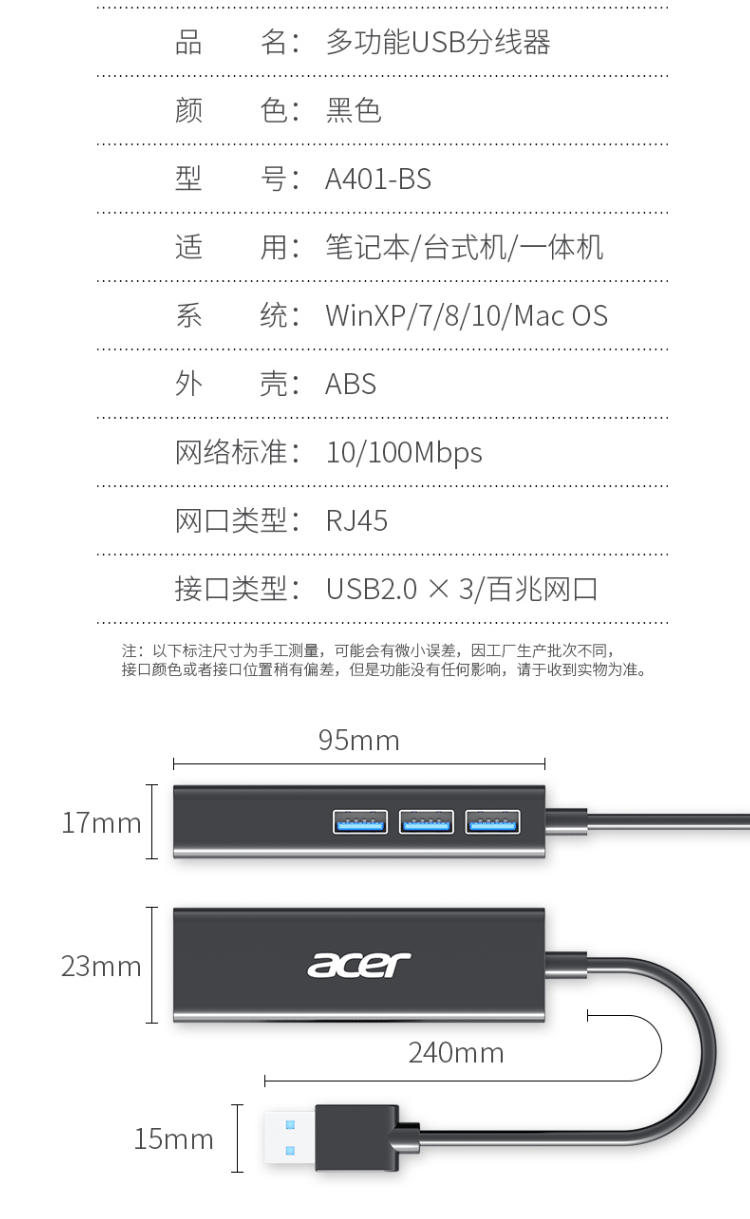 商品名称:宏碁(acer)USB分线器转网口有线网卡RJ45(四合一 网口+USB*3)