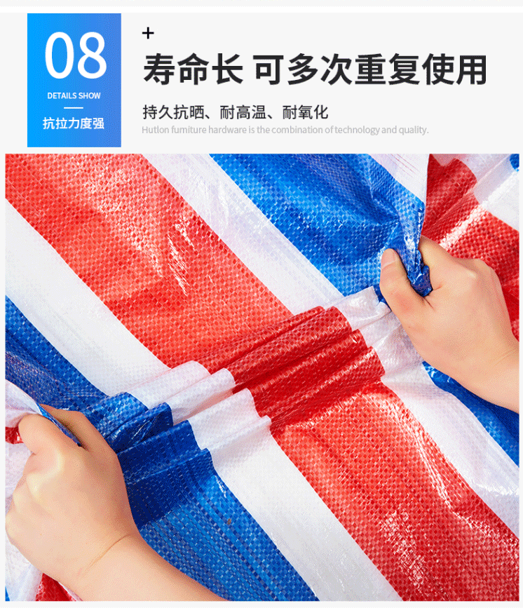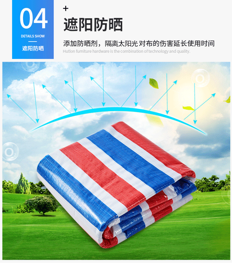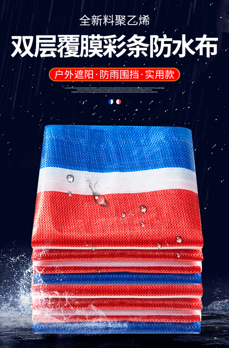 商品名称:彩条布 防雨布 塑料布 三色布防水布防晒加厚120g 6m*10m