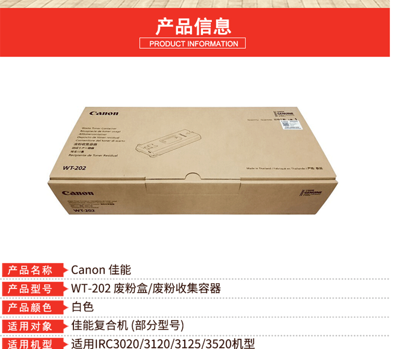 商品名称:佳能(Canon) WT-202 废粉盒/废粉收集容器(适用IRC3020/3120/3125/3520机型)