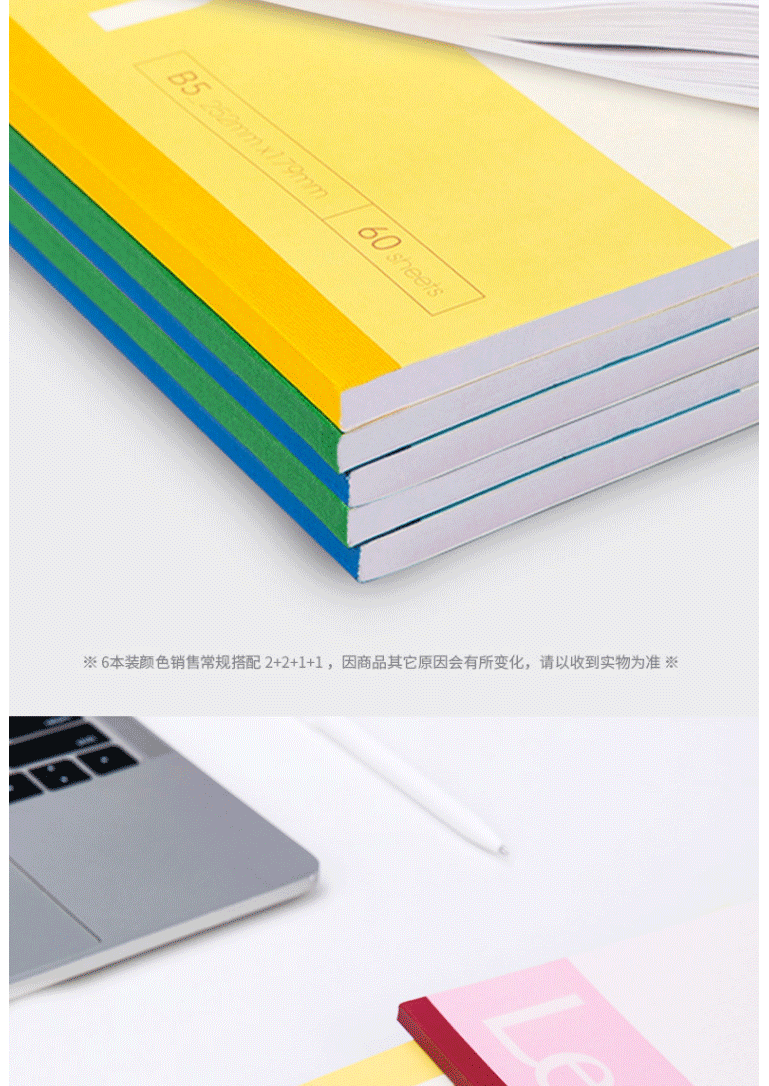 商品名称:得力 B5 60张 7664 办公无线装订本 软抄本记事本 工作笔记本办公用品 无线胶装本 (混) 6本装