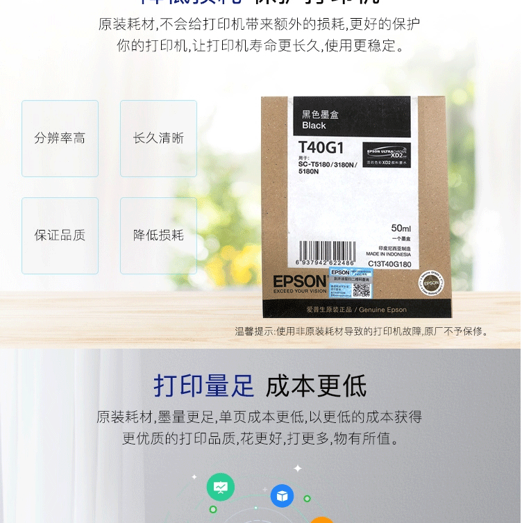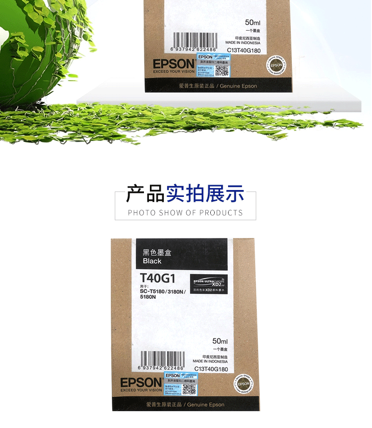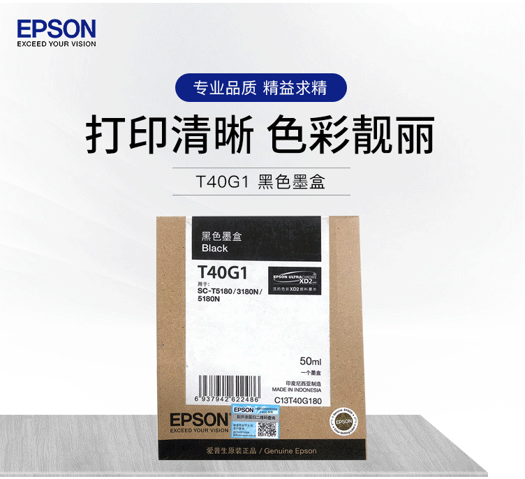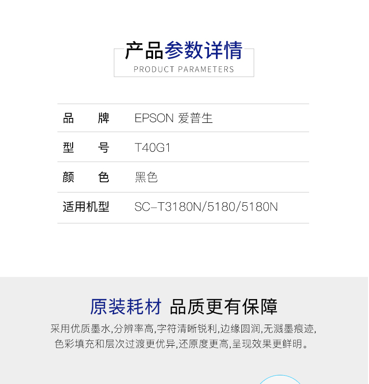 商品名称:爱普生(EPSON)C13T40G180 粗面黑色墨水 (适用于SC-T3180N/3180M/5180/5180N机型)约50ml