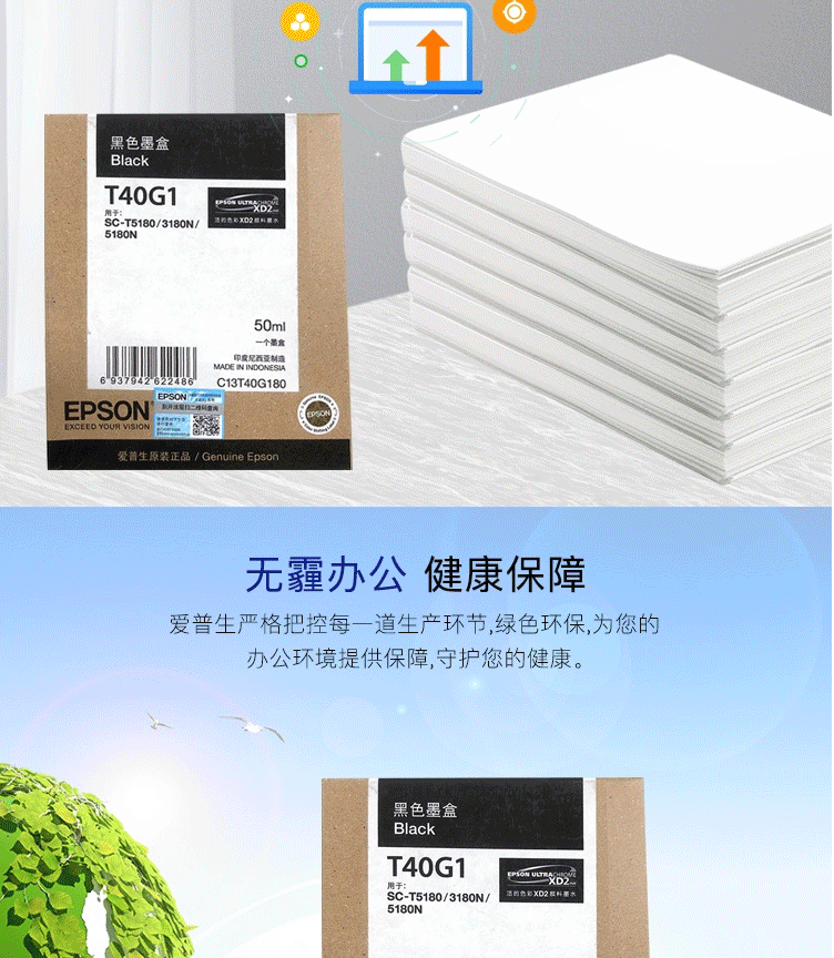 爱普生(EPSON)C13T40G180 粗面黑色墨水 (适用于SC-T3180N/3180M/5180/5180N机型)约50ml