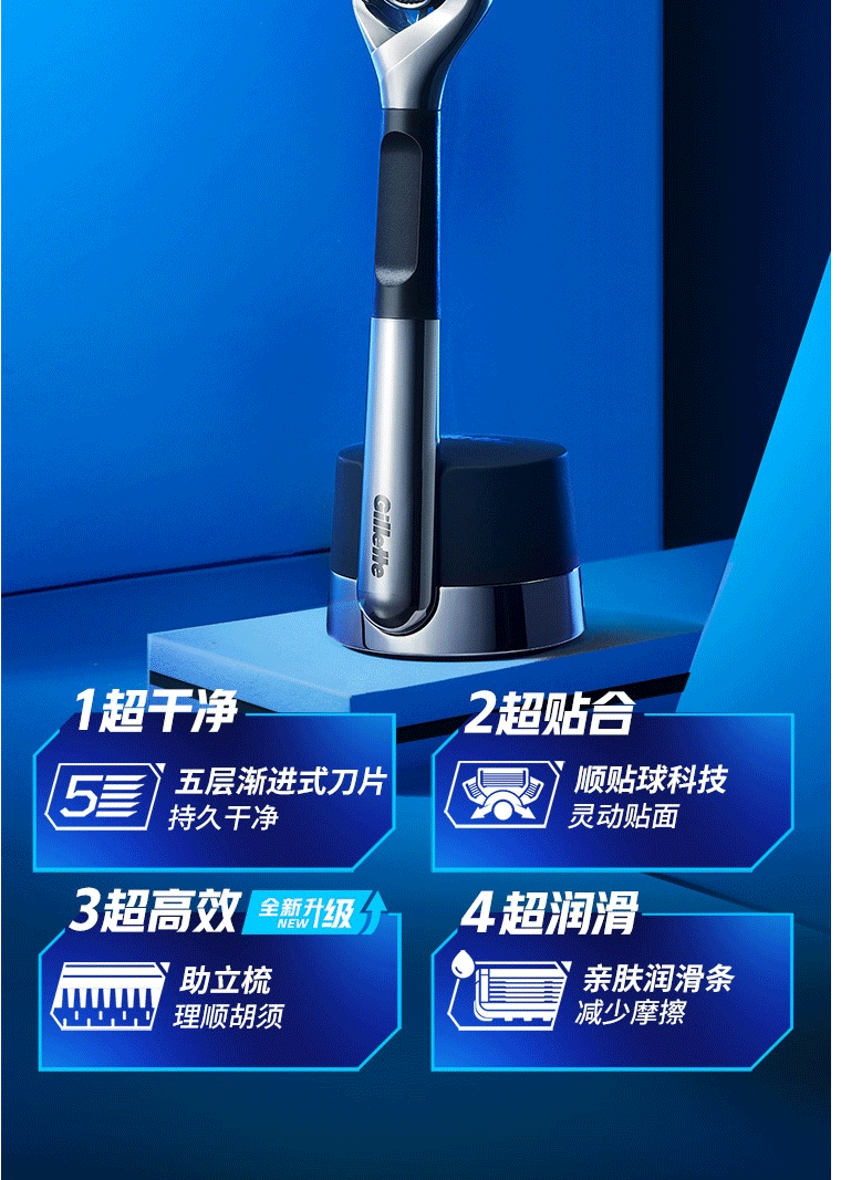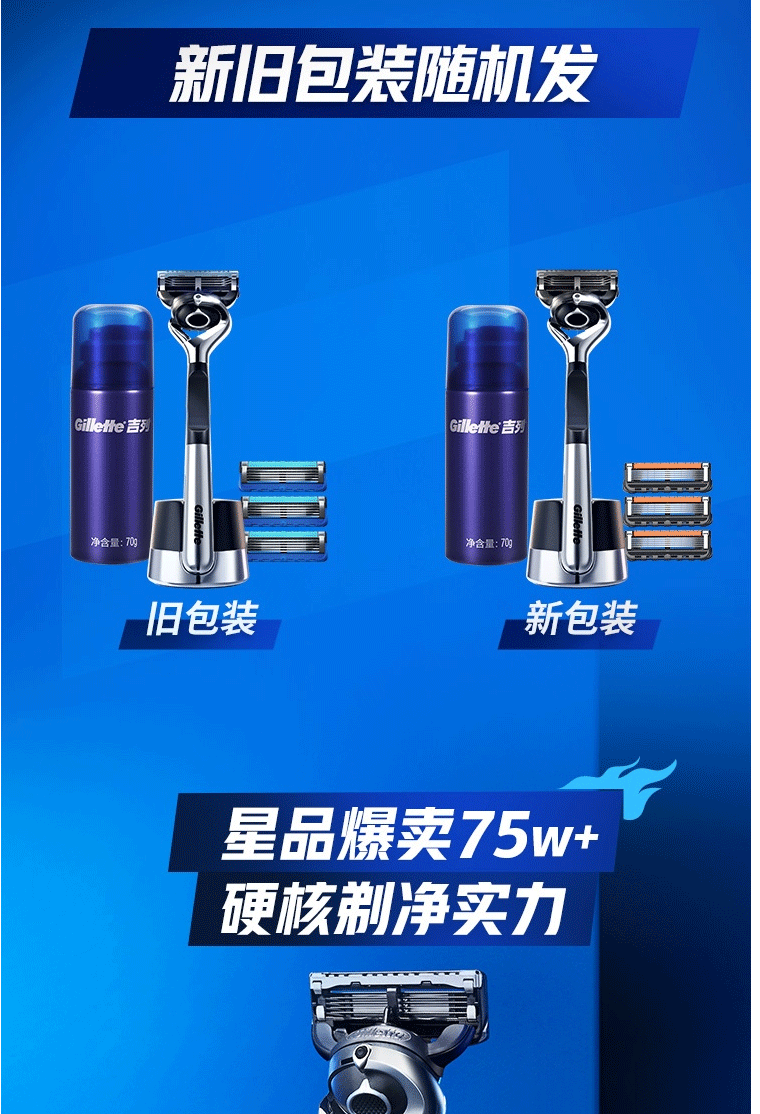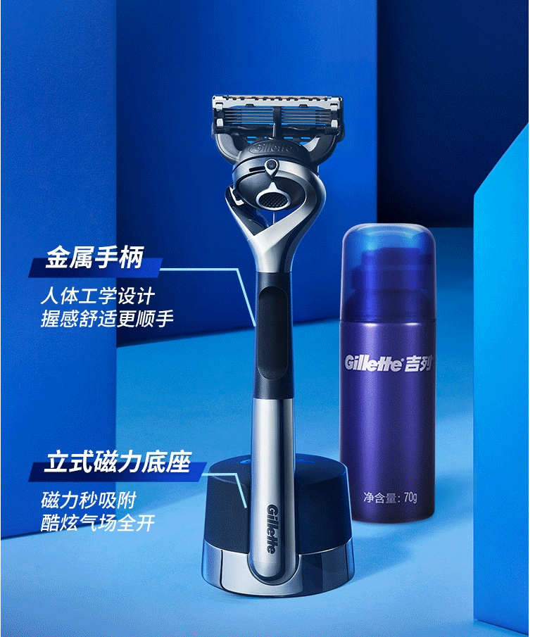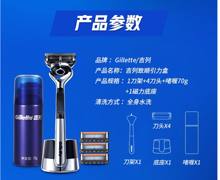 商品名称:吉列(Gillette) 刮胡刀 手动剃须刀 1刀架4刀头+啫喱+底座