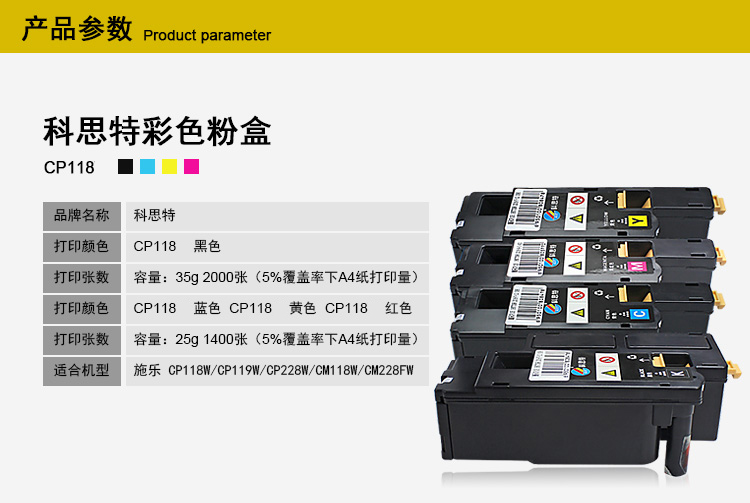 商品名称:科思特CP118W粉盒 适用富士施乐 CP118W/CP119W/CP228W/CM118W/CM228FW 蓝色 专业版