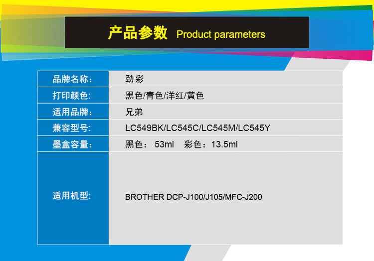 商品名称:劲彩 LC545墨盒 适用兄弟 DCP-J100/J105/MFC-J200 红色