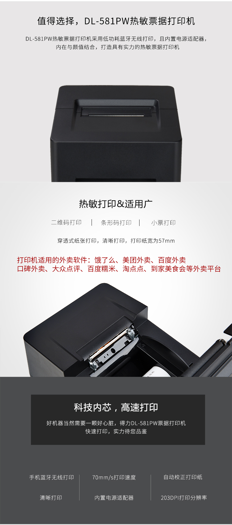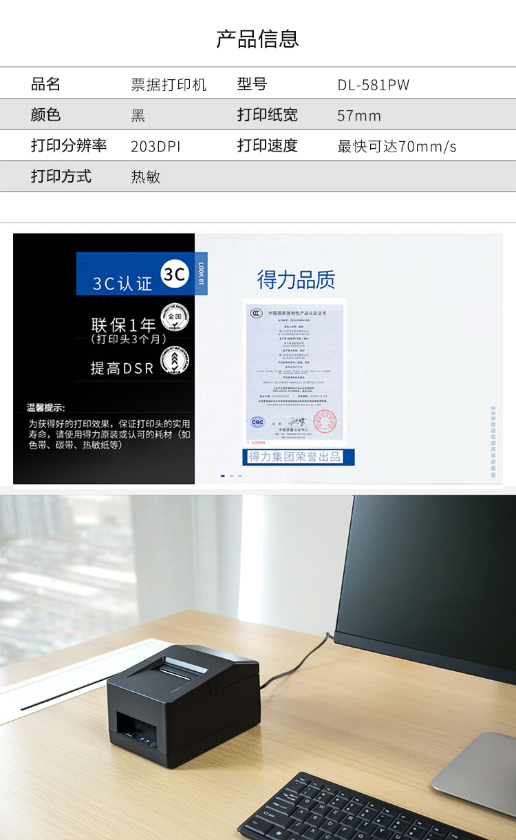 商品名称:得力DL-581PW条码打印机 热敏票据打印机(黑)