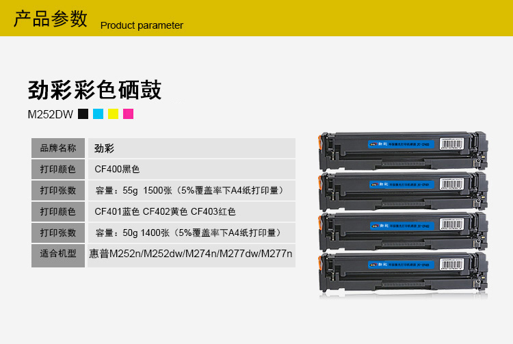 商品名称:劲彩CF403A硒鼓 适用惠普M252n M252dw M274n M277dw M279n 红色