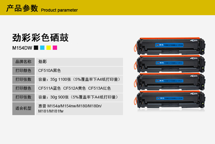 商品名称:劲彩CF511A硒鼓 适用惠普 M154a M154nw M180 M180n M181 蓝色