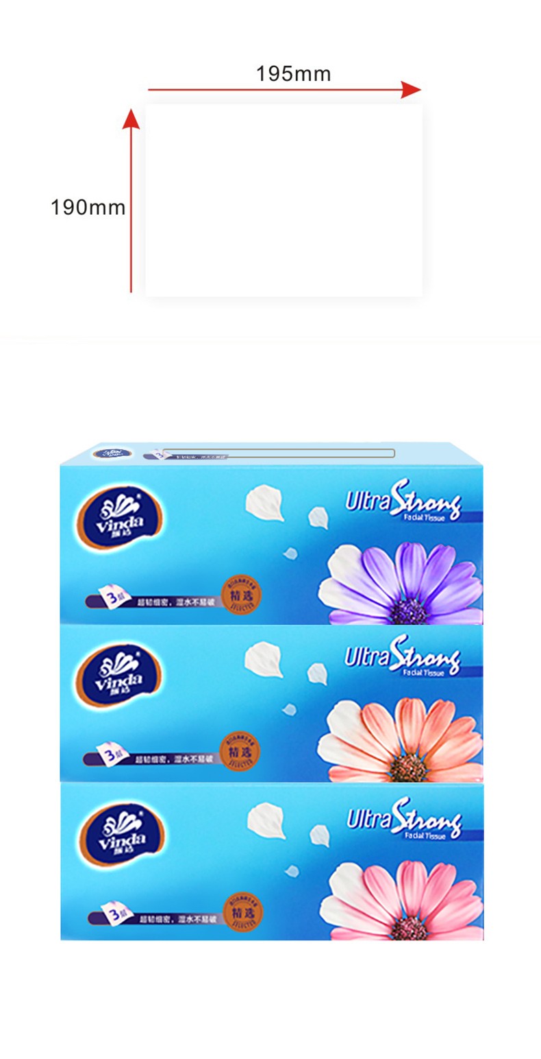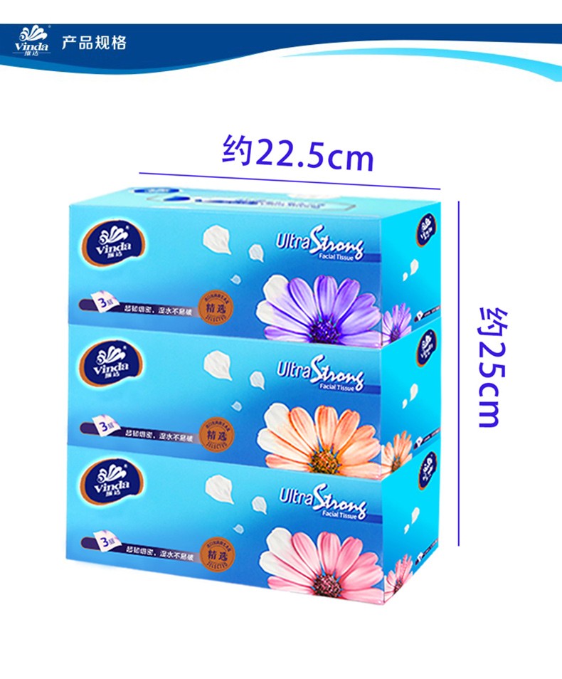 商品名称:维达(Vinda) 硬盒抽纸巾V2218 纸抽 面巾纸 餐巾纸 130抽三层面巾纸餐纸 3盒/提 12提/箱