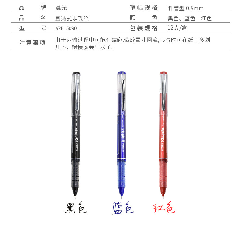 商品名称:晨光陶瓷球珠直液式签字笔ARP50901黑0.5 12支/盒
