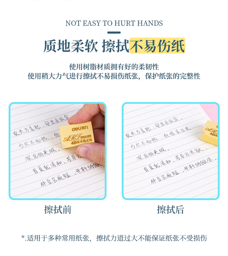 商品名称:得力(deli)大号4B黄色考试美术绘图橡皮擦 7535 (单位:块)