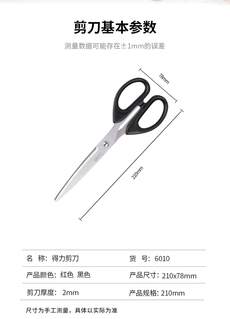 商品名称:得力(deli)210mm大号办公剪刀 6010 颜色随机