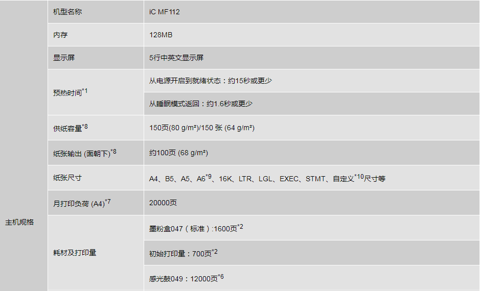 商品名称:佳能(CANON)MF112 黑白激光多功能一体机 标配打印、复印、扫描三合一