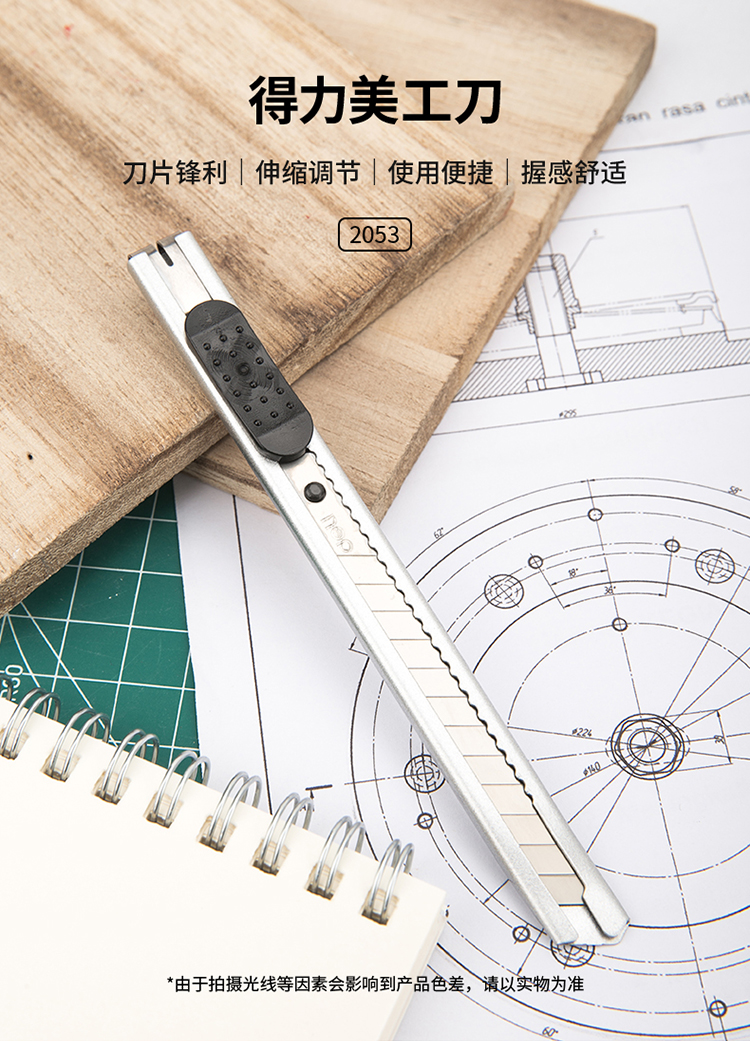 得力(deli)小号金属外壳办公美工刀/裁纸刀/壁纸刀 2053白色