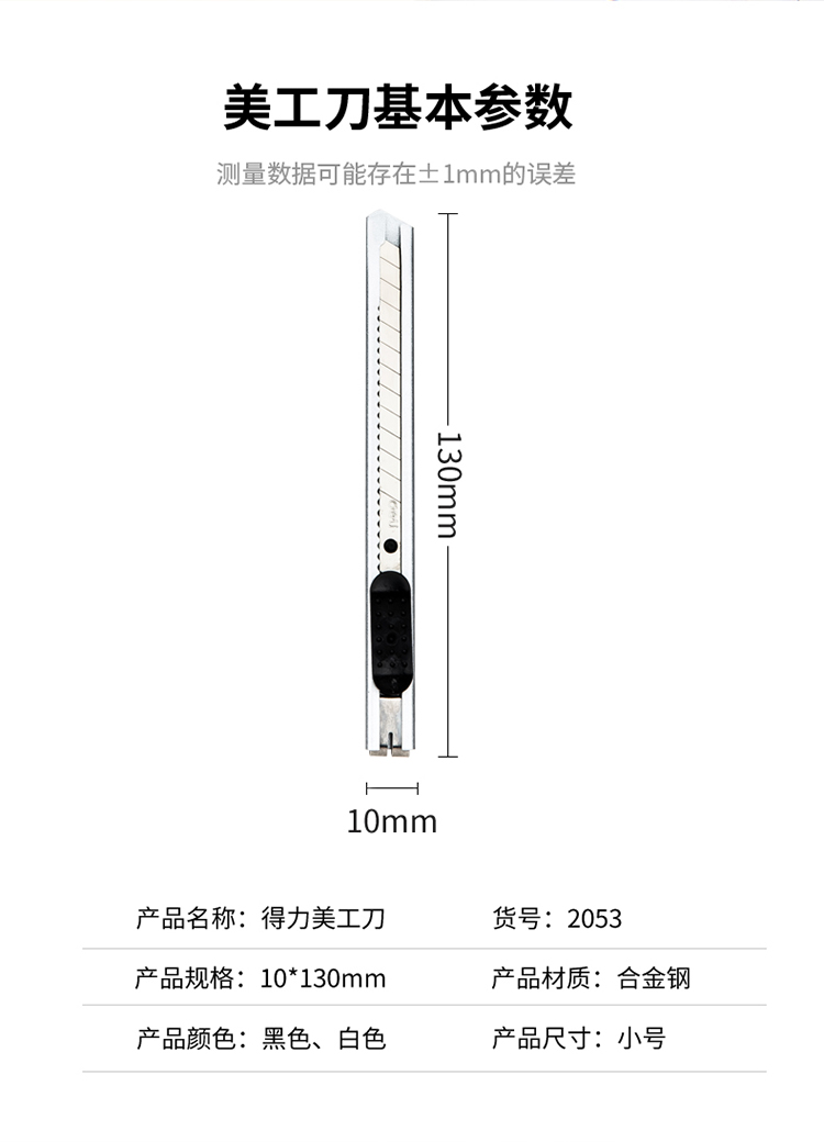 商品名称:得力(deli)小号金属外壳办公美工刀/裁纸刀/壁纸刀 2053白色