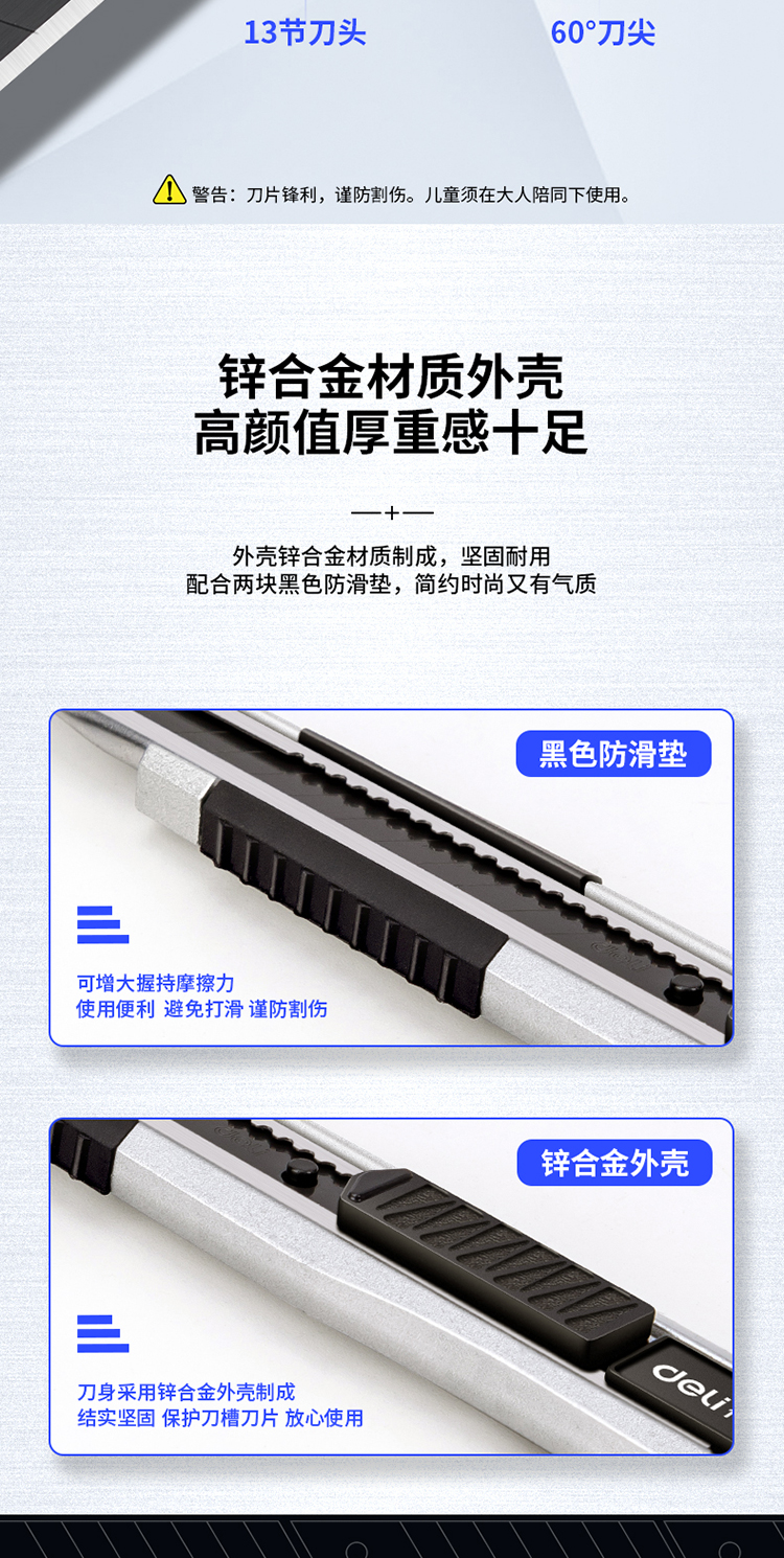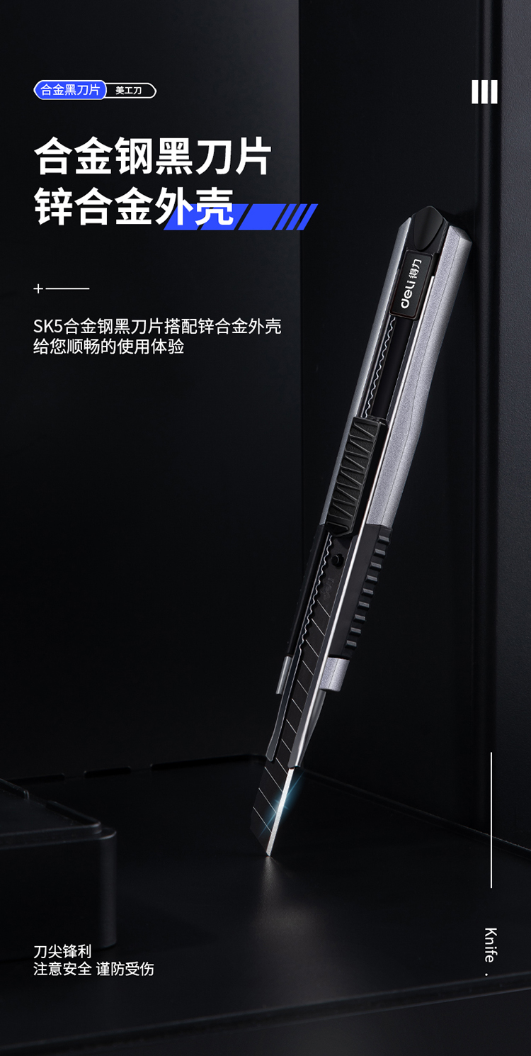得力deli)黑刀片锌合金美工刀 安全自锁功能裁纸刀/壁纸刀 2056