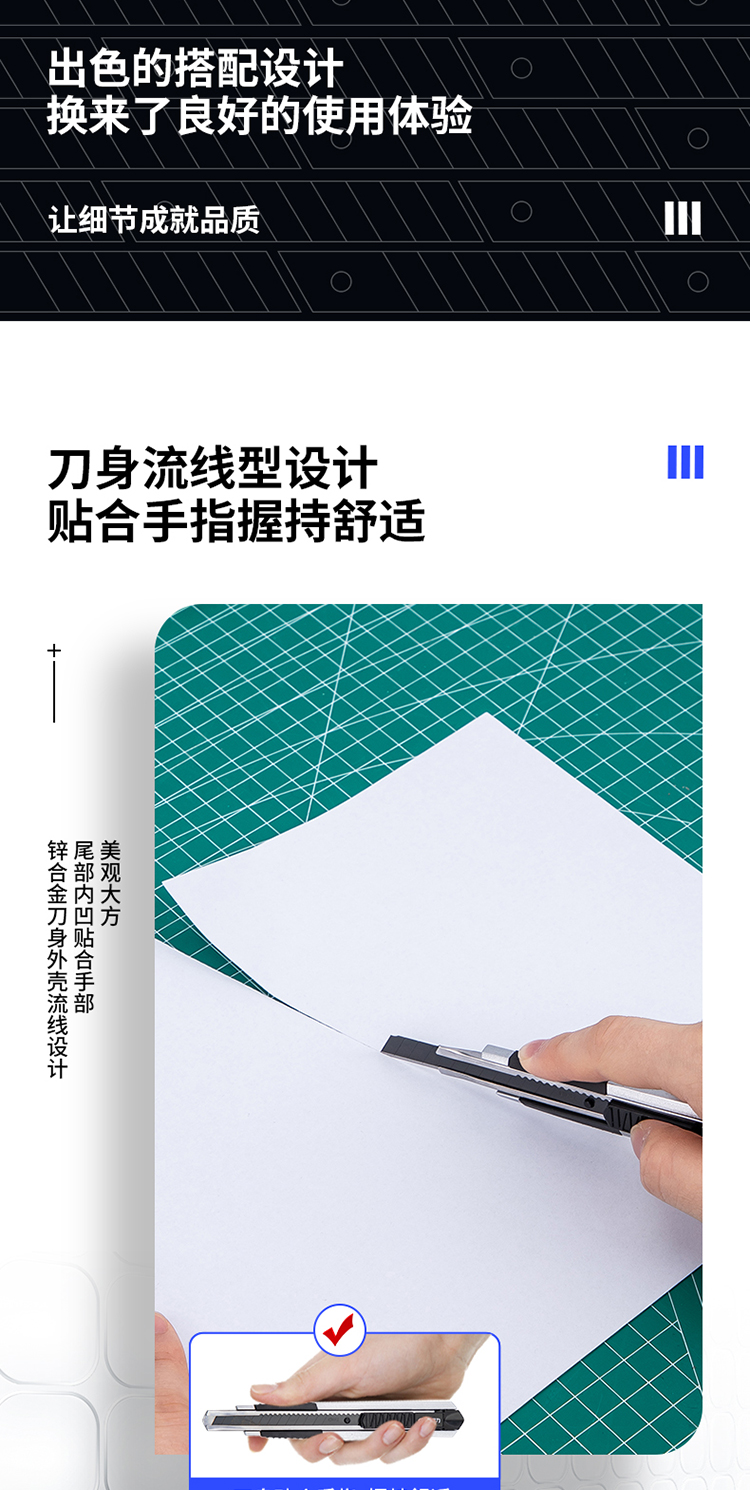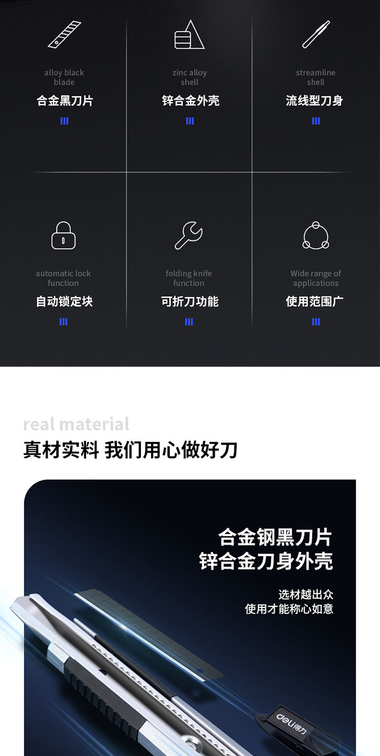 商品名称:得力deli)黑刀片锌合金美工刀 安全自锁功能裁纸刀/壁纸刀 2056