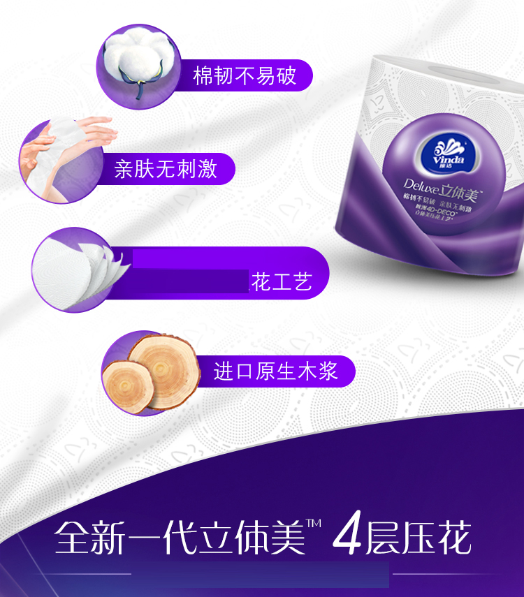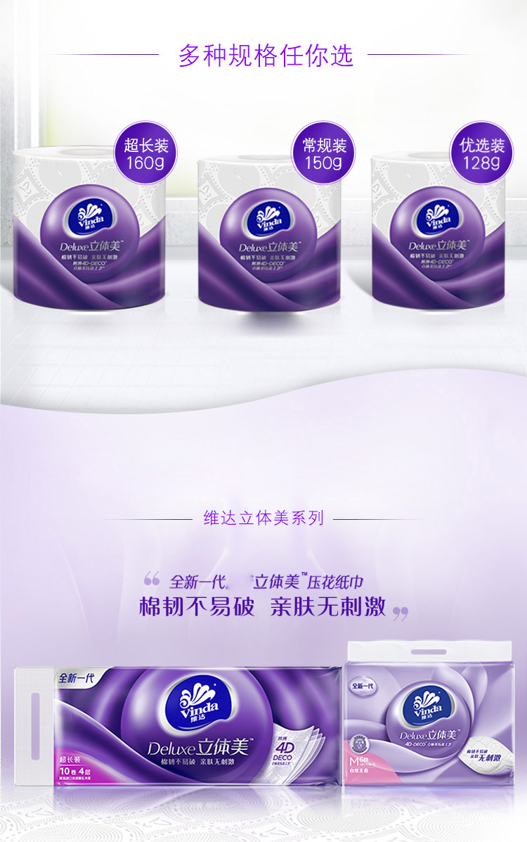 商品名称:维达(Vinda) 卷纸 立体美4层150g卫生纸*10卷 母婴可用