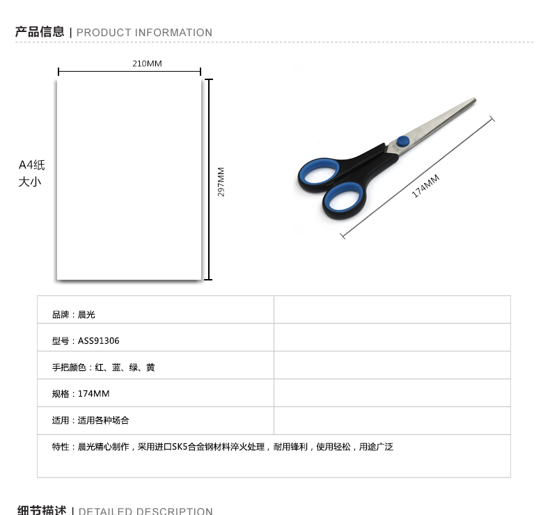 商品名称:晨光 合金钢剪刀 办公剪子 170mm ASS91306 随机颜色