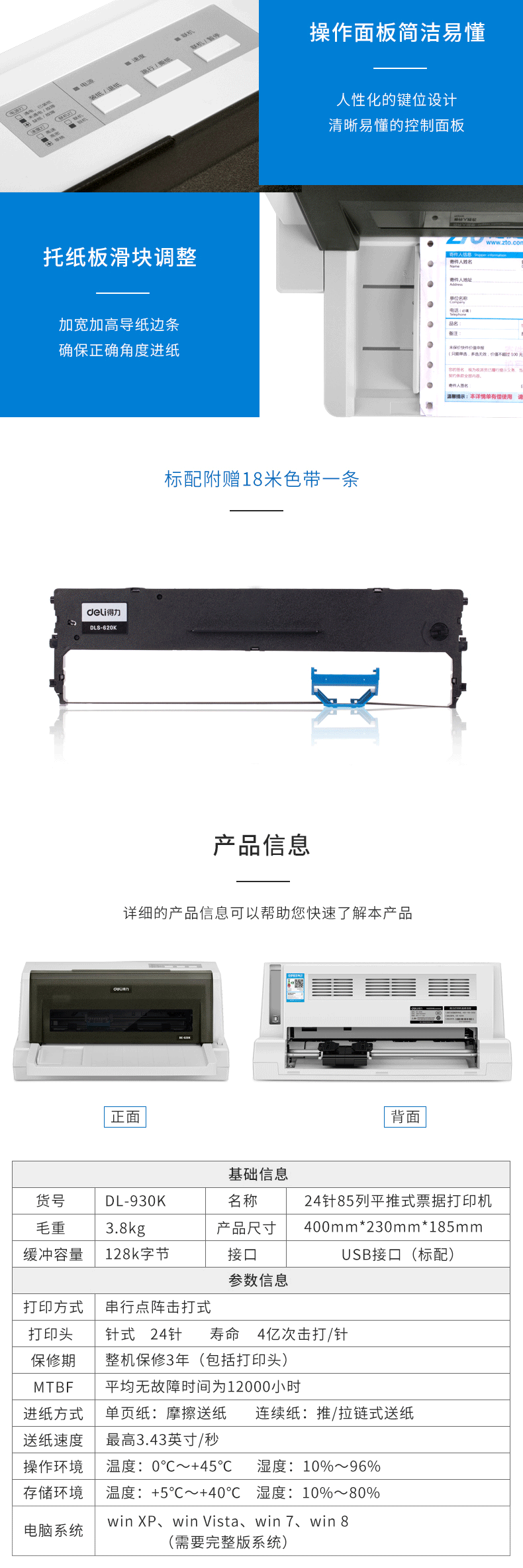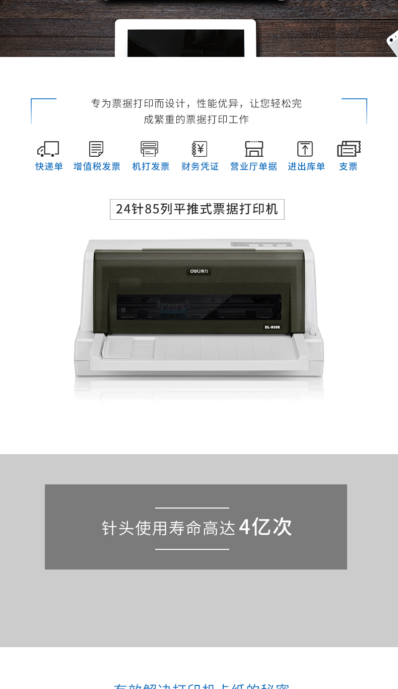 商品名称:得力DL-930K针式打印机 平推式票据打印机(白)