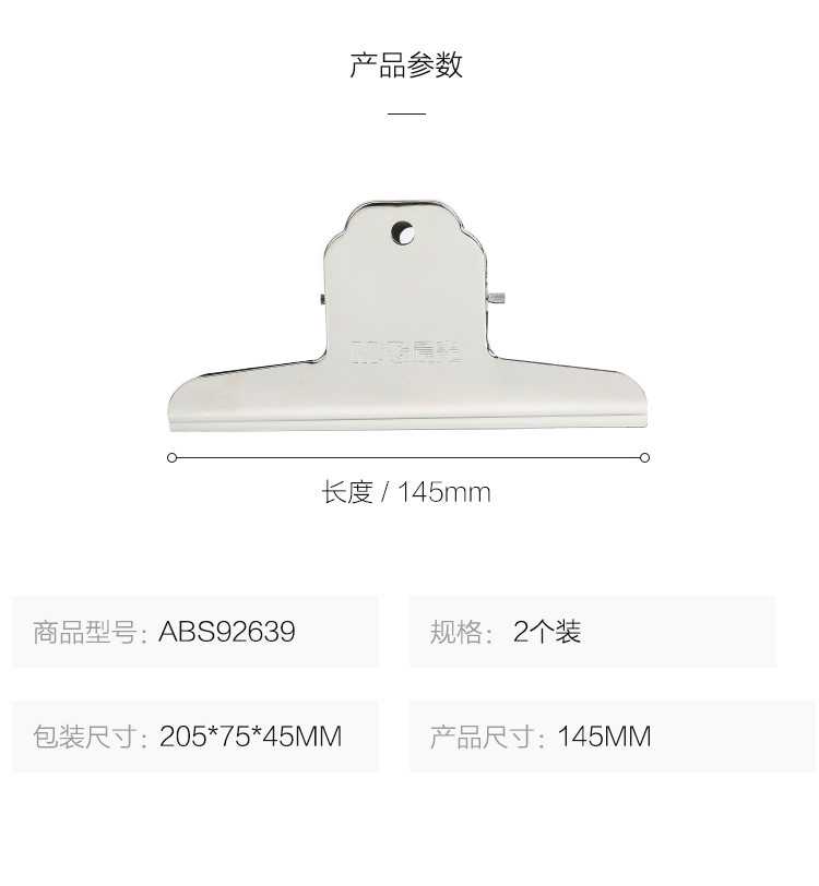商品名称:晨光(M&G) 145mm山形票夹 办公金属财务票据夹 不锈钢夹子 画板夹 ABS92639(2个装)
