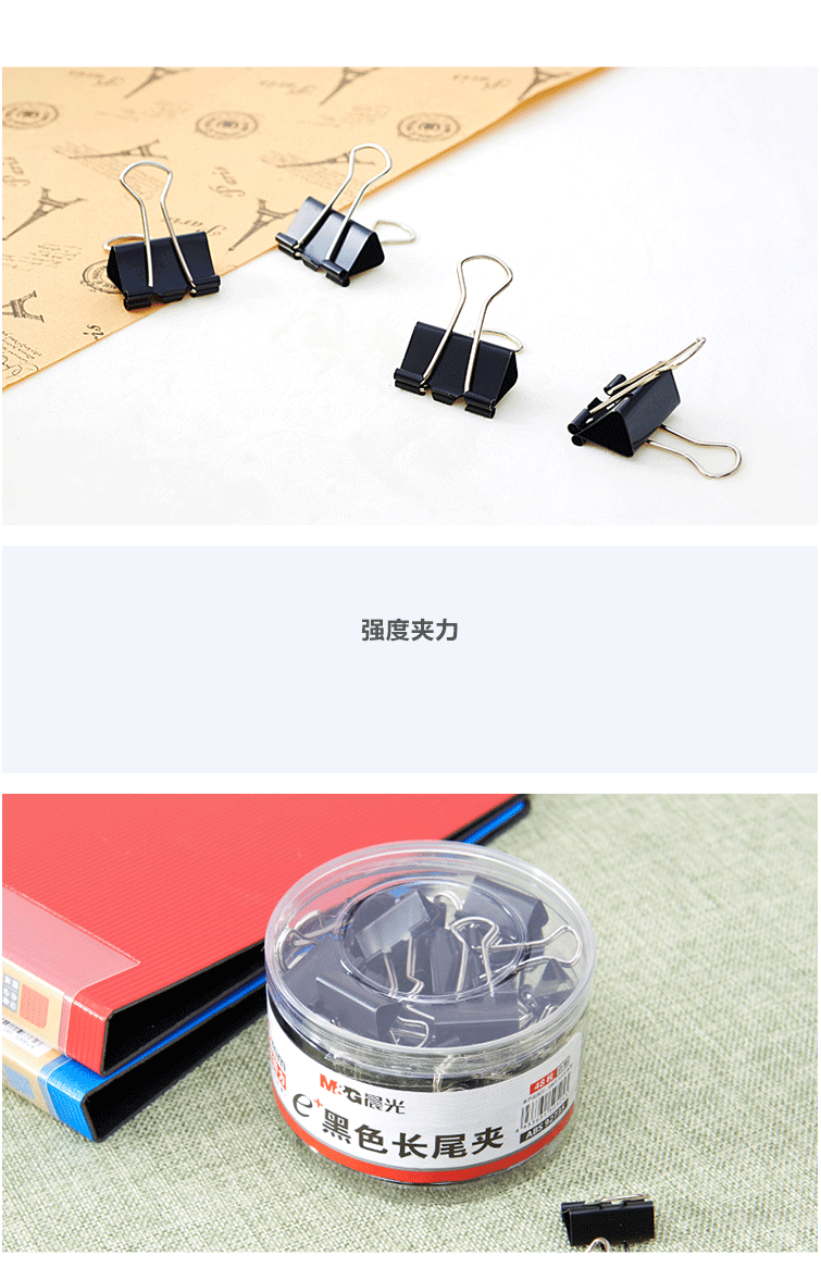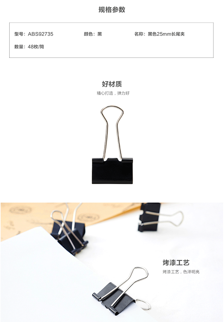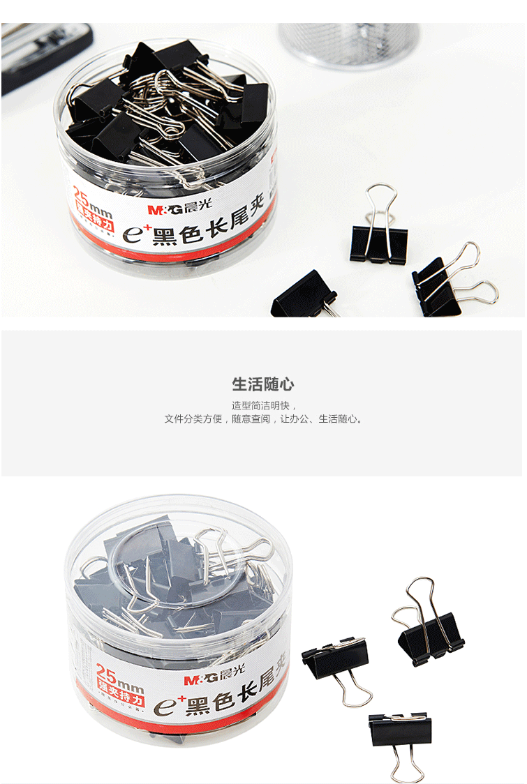 商品名称:晨光(M&G) 25mm黑色长尾夹 金属票据夹 Eplus系列办公燕尾夹 48只/罐ABS92735