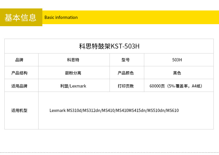 科思特 503H鼓架 适用利盟MS310d MS312dn MS410 MS415dn MS510dn MS610 专业版