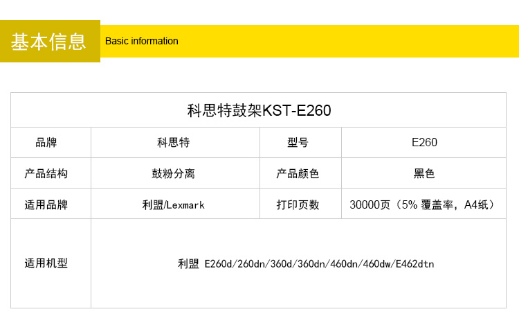商品名称:科思特 E260鼓架 适用利盟E260d 260dn E360d 360dn E460dn E460dw E462dtn硒鼓