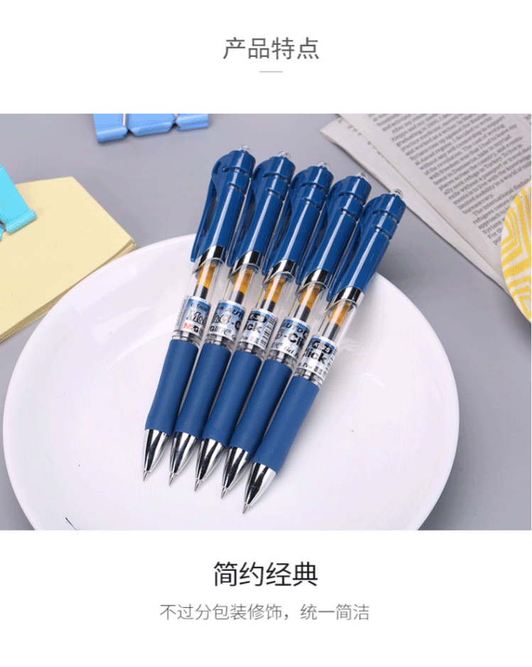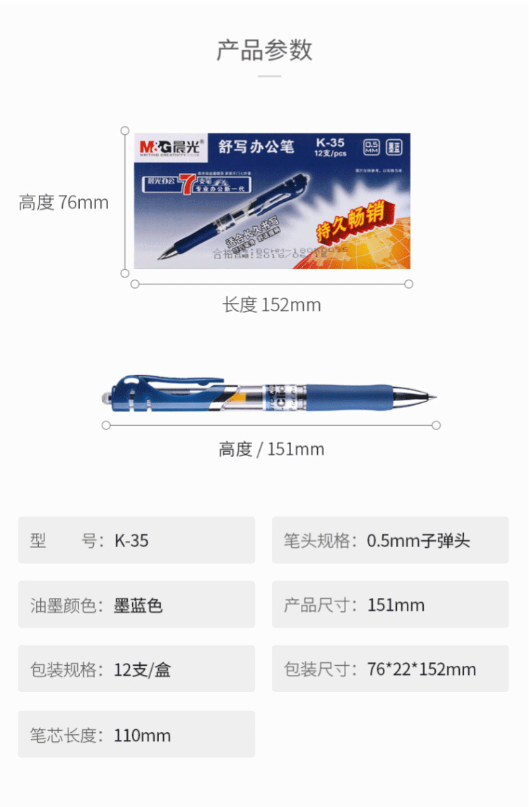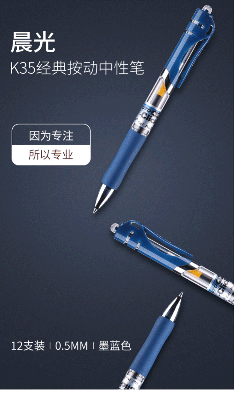 商品名称:晨光(M&G) 0.5mm中性笔 经典按动子弹头签字笔 12支/盒 K35墨蓝色