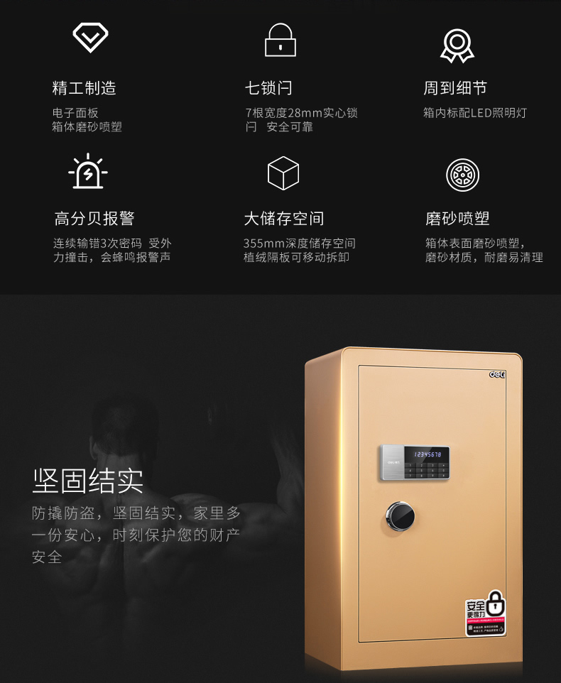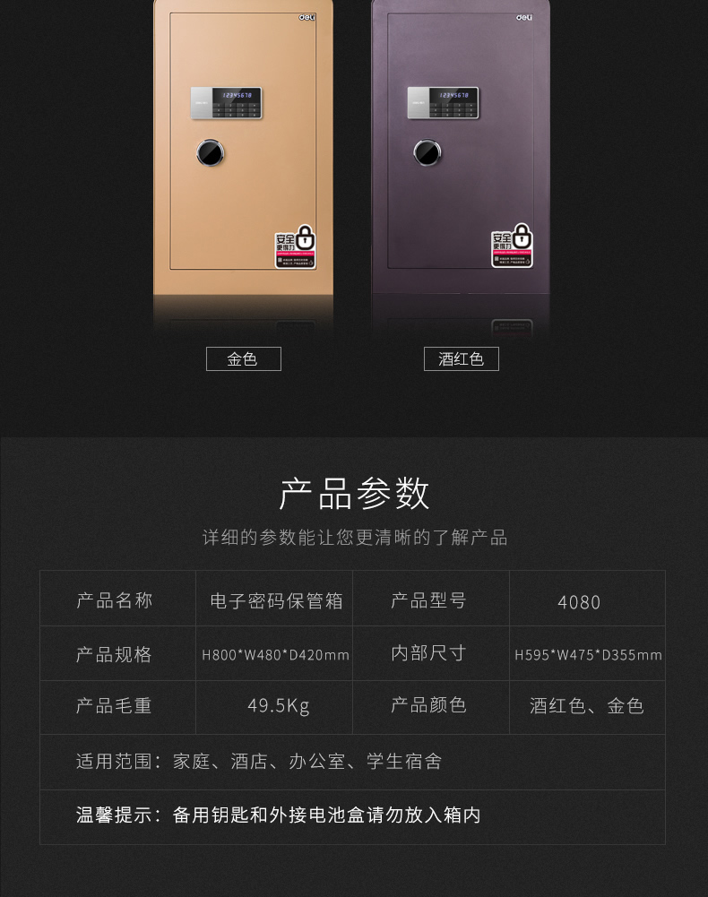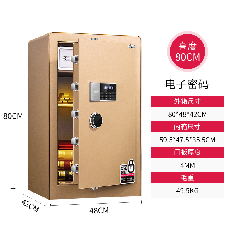 商品名称:得力保险柜 80cm电子密码箱 办公室全钢保险箱保管箱 4080