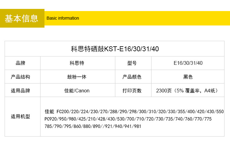 商品名称:科思特 E16硒鼓 适用佳能FC981 950 920 860 770 720 430 425 330 310 200 专业版