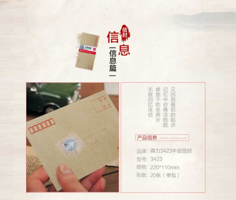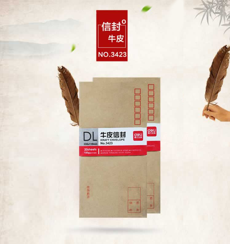 商品名称:得力3423牛皮信封-5号标准信封 米黄色(20个/包) (单位:包)