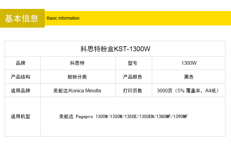 商品名称:科思特 1300粉盒 适用柯美 1300 1350 1380 1390W 专业版