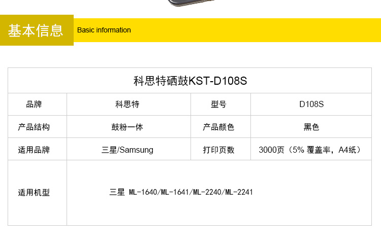商品名称:科思特 D108S硒鼓 适用三星ML-1640 ML1641 ML-2240 ML-2241 D108 专业版