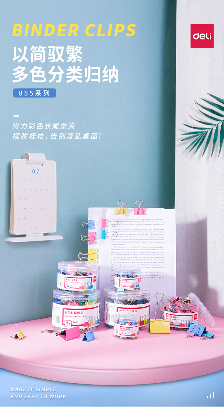 得力(deli) 32mm彩色长尾夹票夹 3#金属燕尾夹票据夹子 8553 (24只/桶)