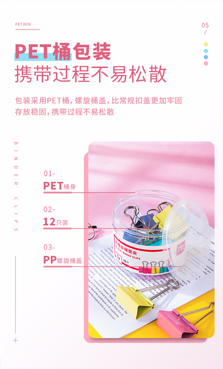 商品名称:得力(deli) 32mm彩色长尾夹票夹 3#金属燕尾夹票据夹子 8553 (24只/桶)