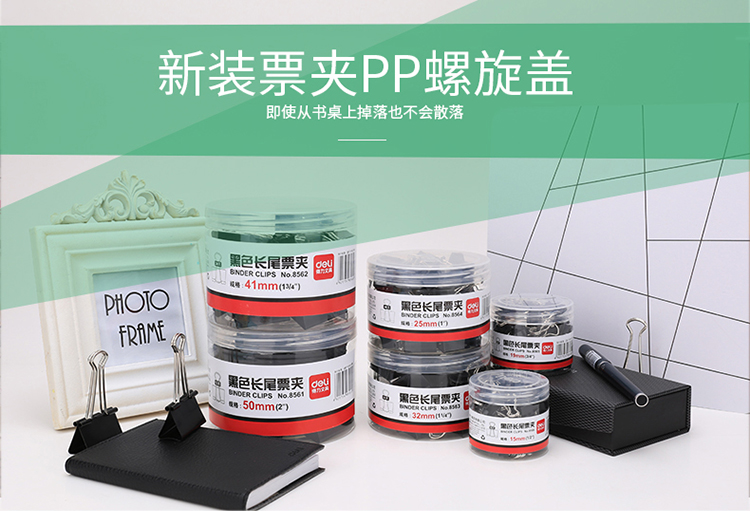 得力(deli) 15mm黑色长尾夹票夹 小号金属燕尾夹票据夹子 8566 (60只/桶)