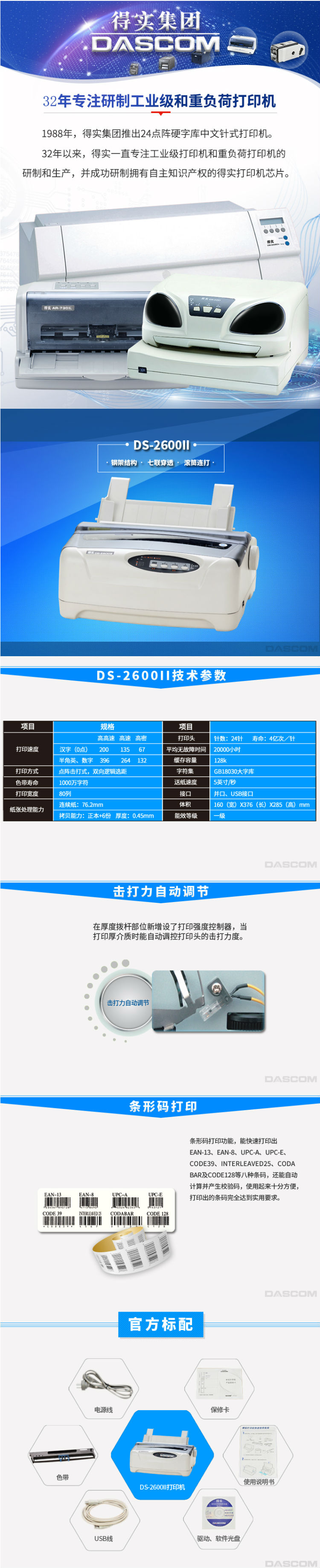 得实(Dascom)DS-2600II 多功能高速80列通用针式打印机