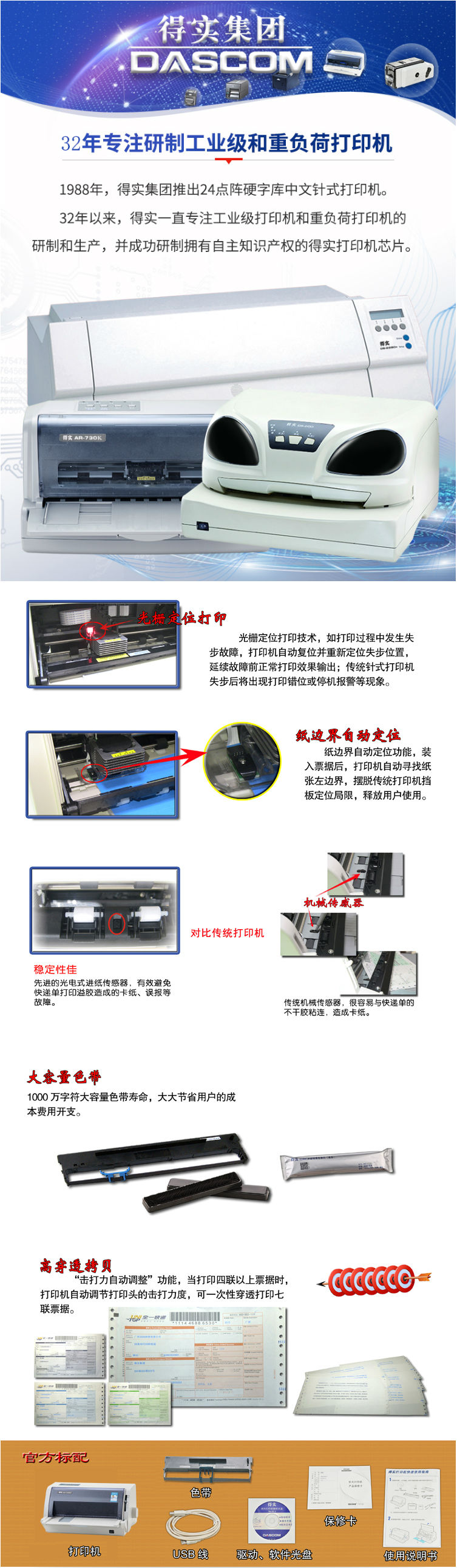 商品名称:得实(Dascom)DS-1920 高效智能型24针82列平推式票据打印机