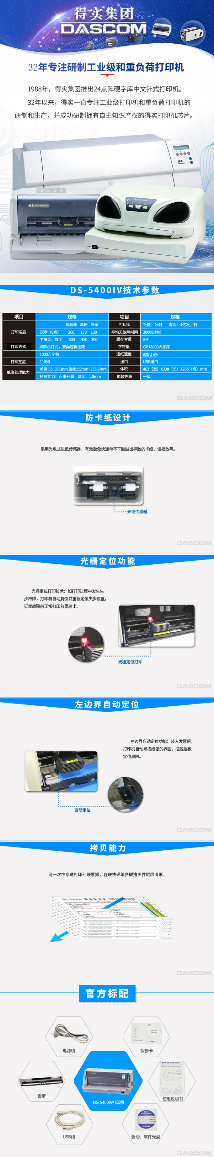 商品名称:得实(Dascom)DS-5400IV 高速复写110列平推24针票据 证卡针式打印机